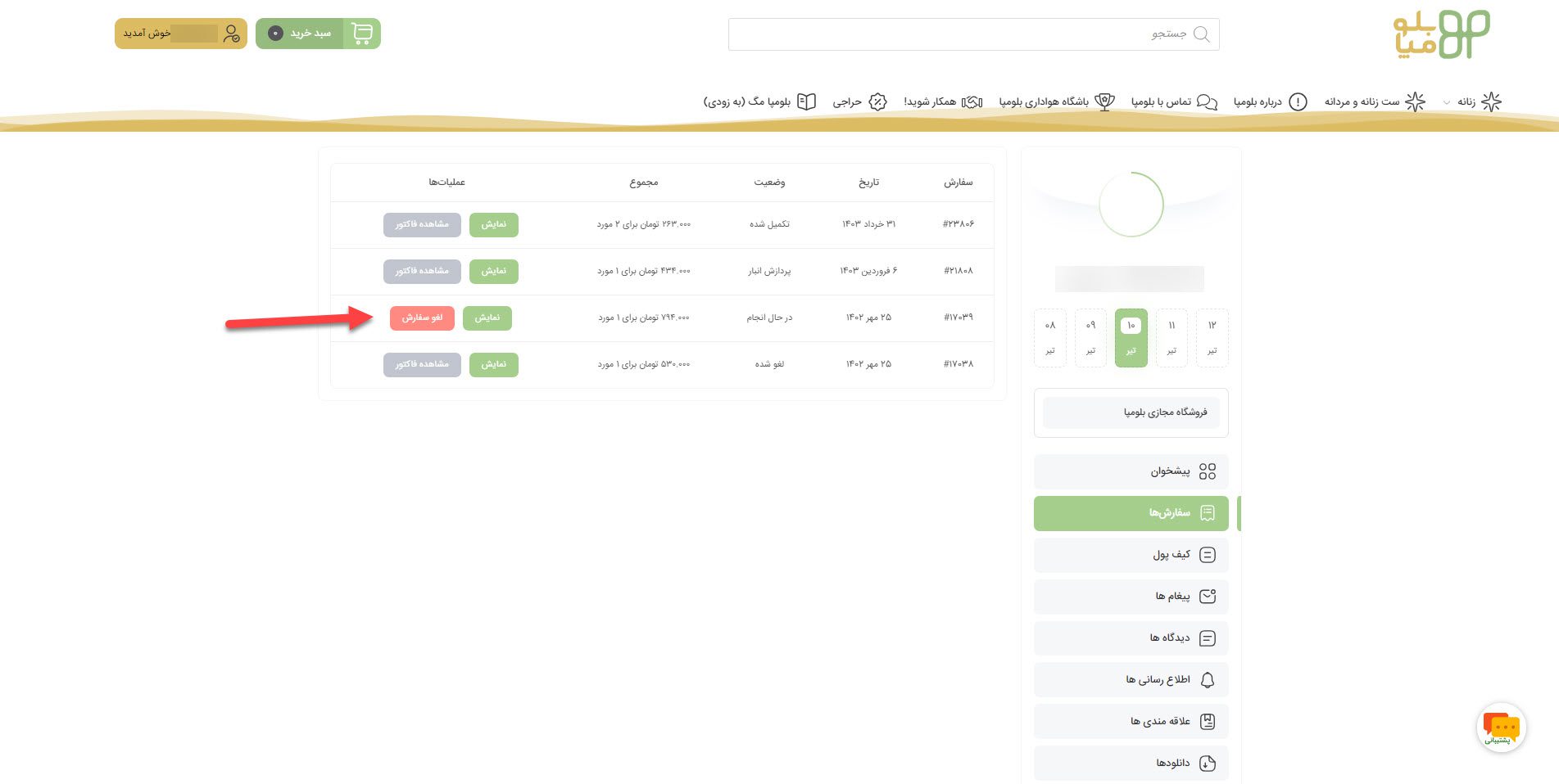 * دقت فرمایید که فقط سفارشاتی که در وضعیت “در حال انجام” هستند، قابلیت لغو دارند.