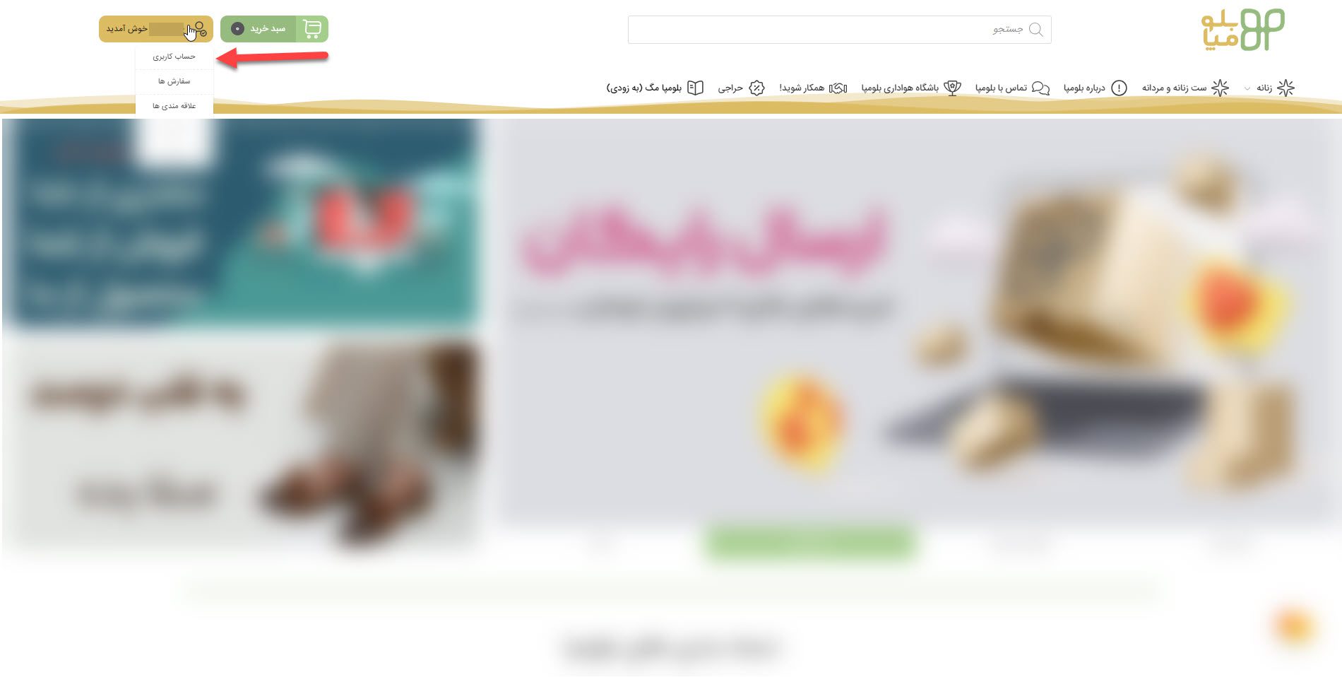 2) از منوی باز شده روی “حساب کاربری” کلیک کنید.