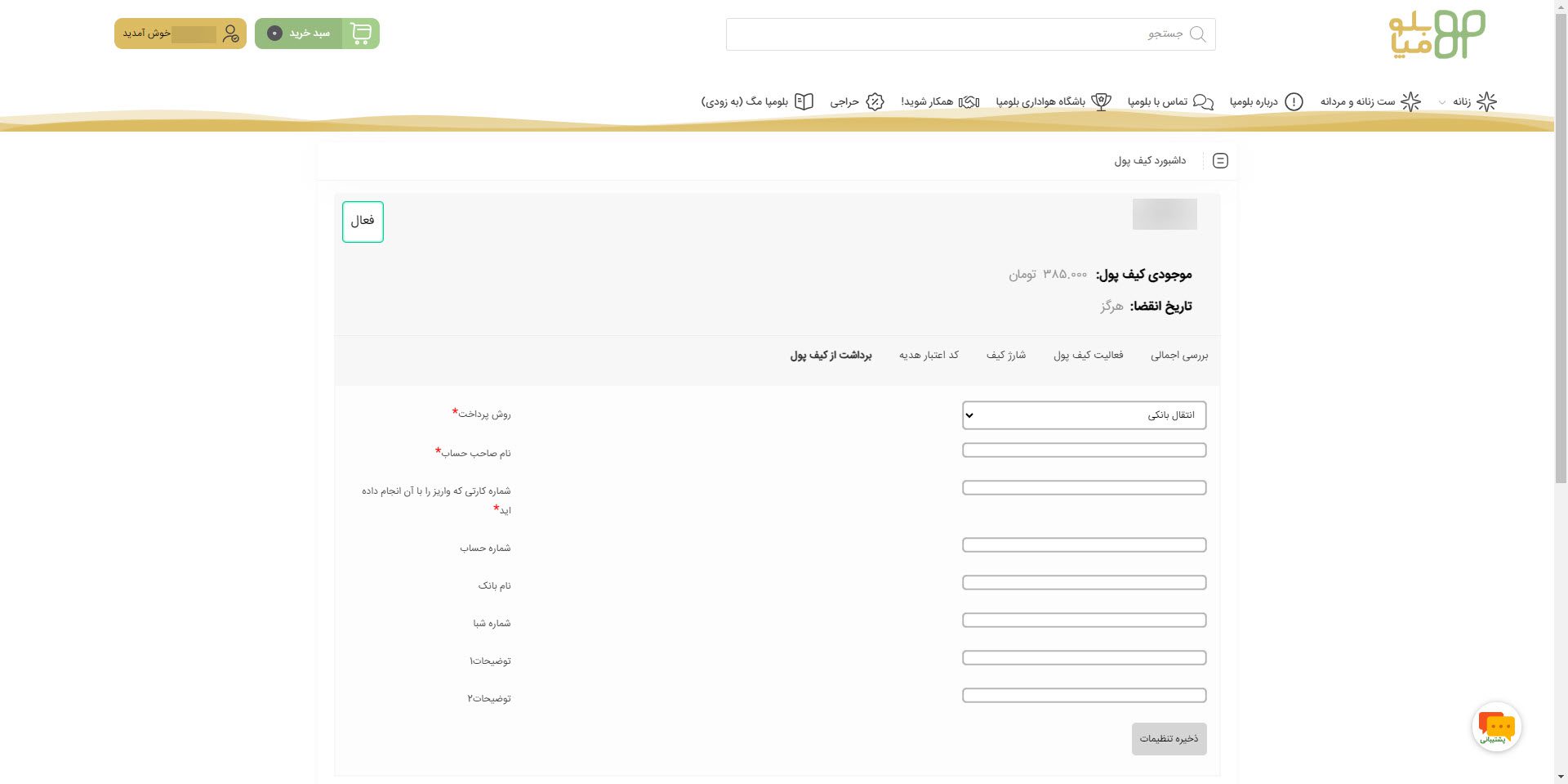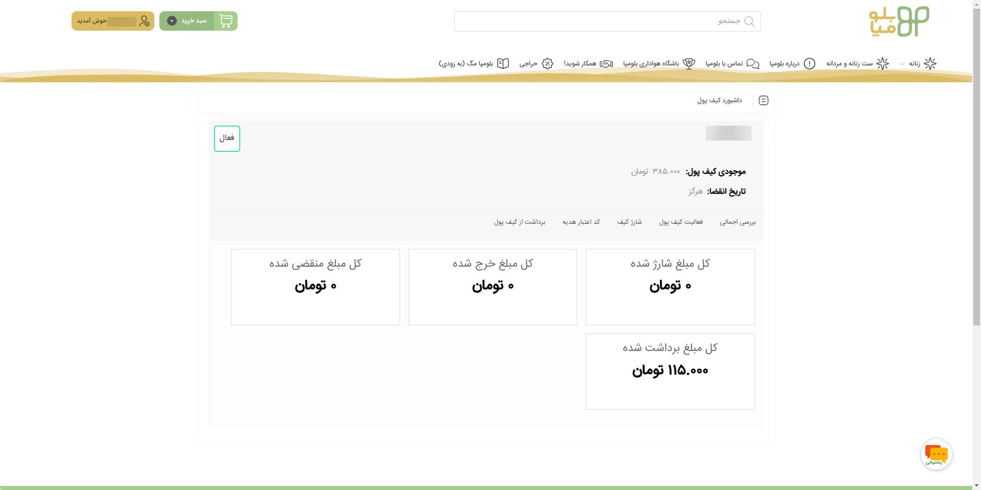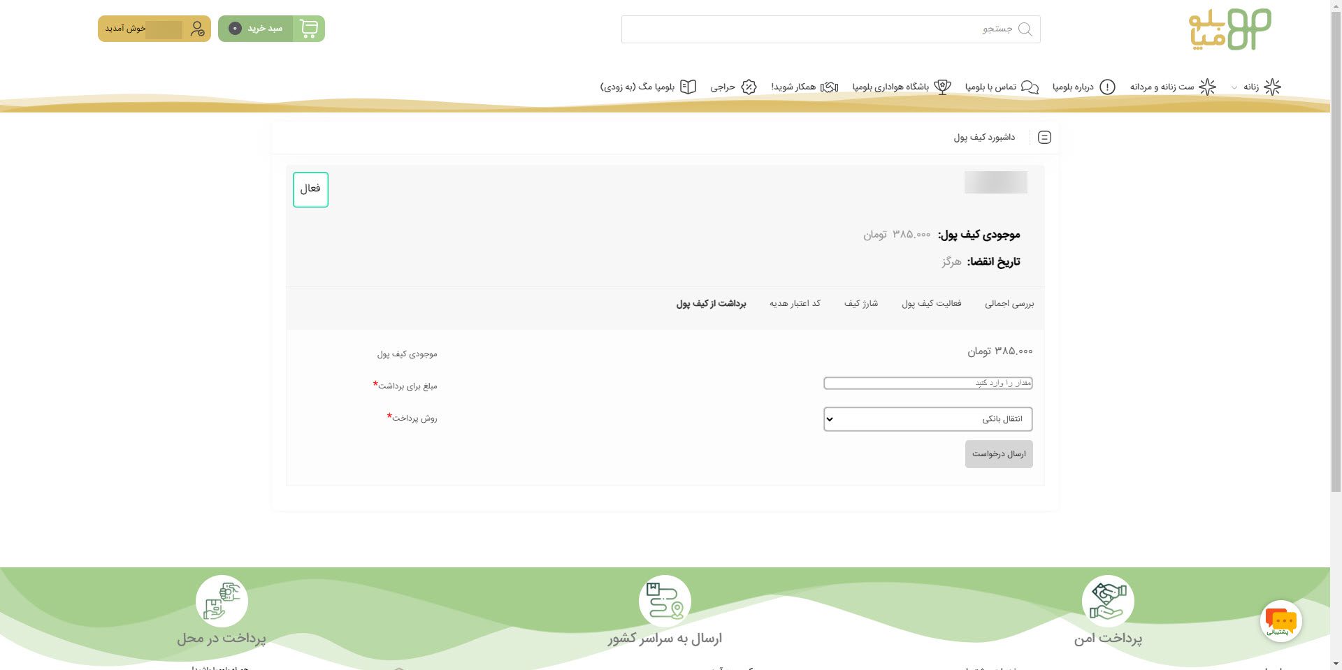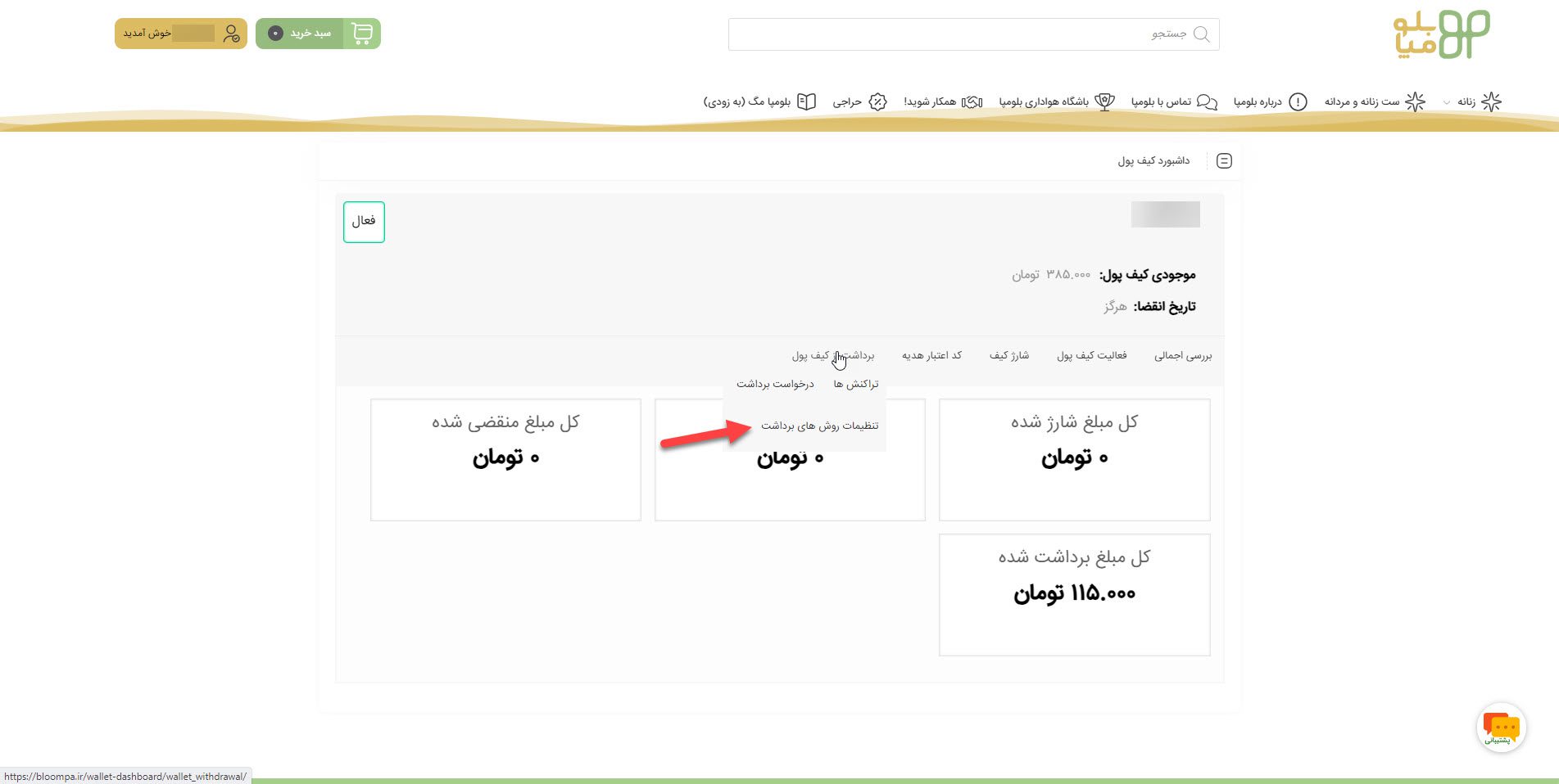 3) از منوی کناری صفحه کاربریتان روی دکمه “کیف پول” کلیک کنید.